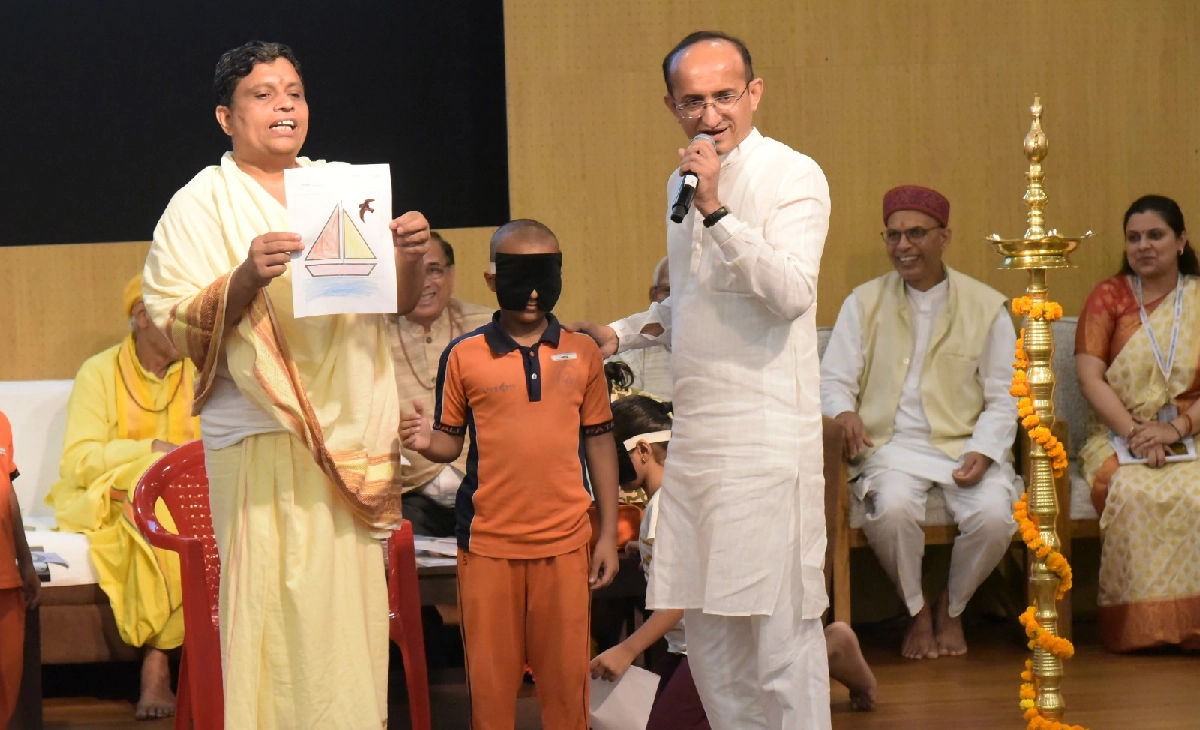A two-day workshop on the Indian meditation practice for holistic health was held at Patanjali University, Haridwar. This event also featured a demonstration of Vedic Manas Yoga. Children of Patanjali Research Foundation Scientists along with students from Patanjali Gurukulam, participated in this demonstration. The children astonished everyone with their incredible abilities—they identified colors, read words on screens, and filled pictures with beautiful colors—all while blindfolded.